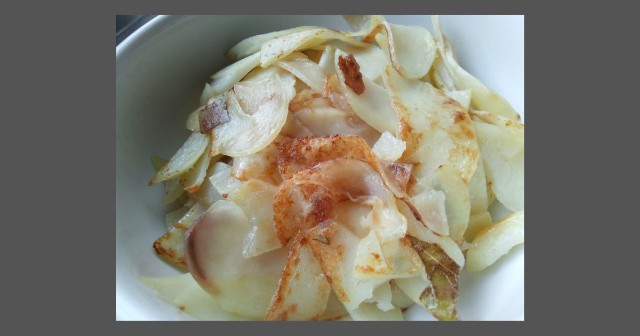 ところどころにじゃが芋がくっついて焼けている部分があり、