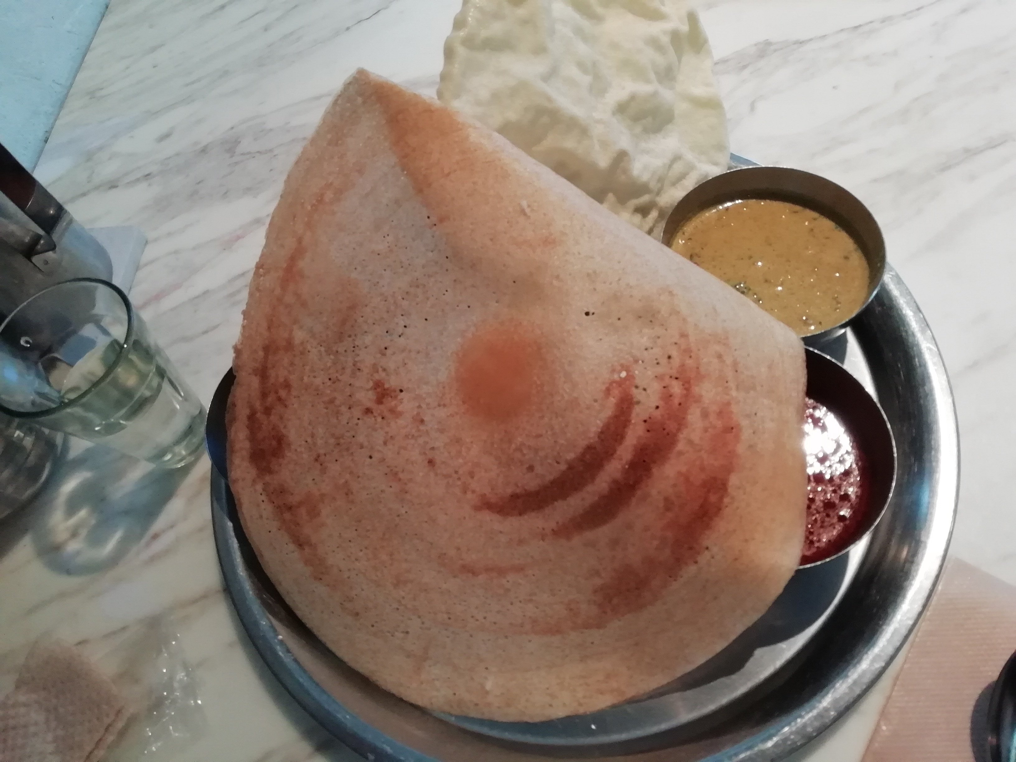サンバルの酸味が強くて、サンバルってこんな?と思いながらも、好みの味。ノンベジはしっかりめだが、全体的にあっさりとした印象。