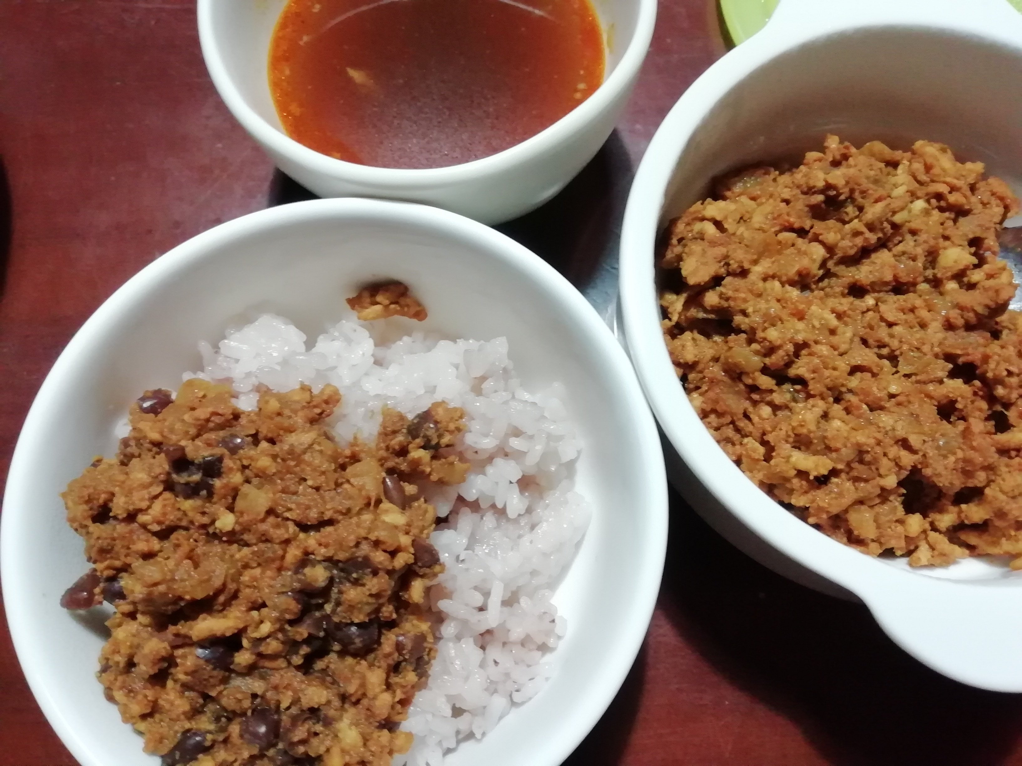 キーマは昨日のソースと一緒に食べるとよりおいしくなった。