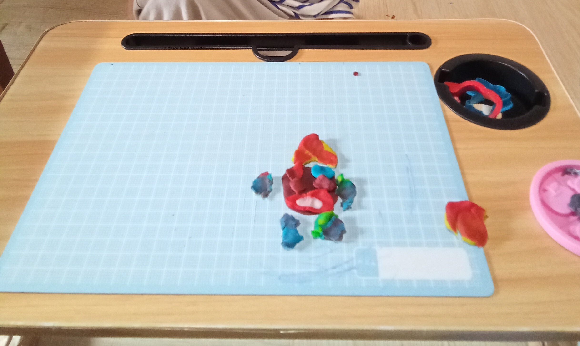 娘っ子の1人遊びで、今日はよく粘土で遊んでた。粘土、私も好きである。