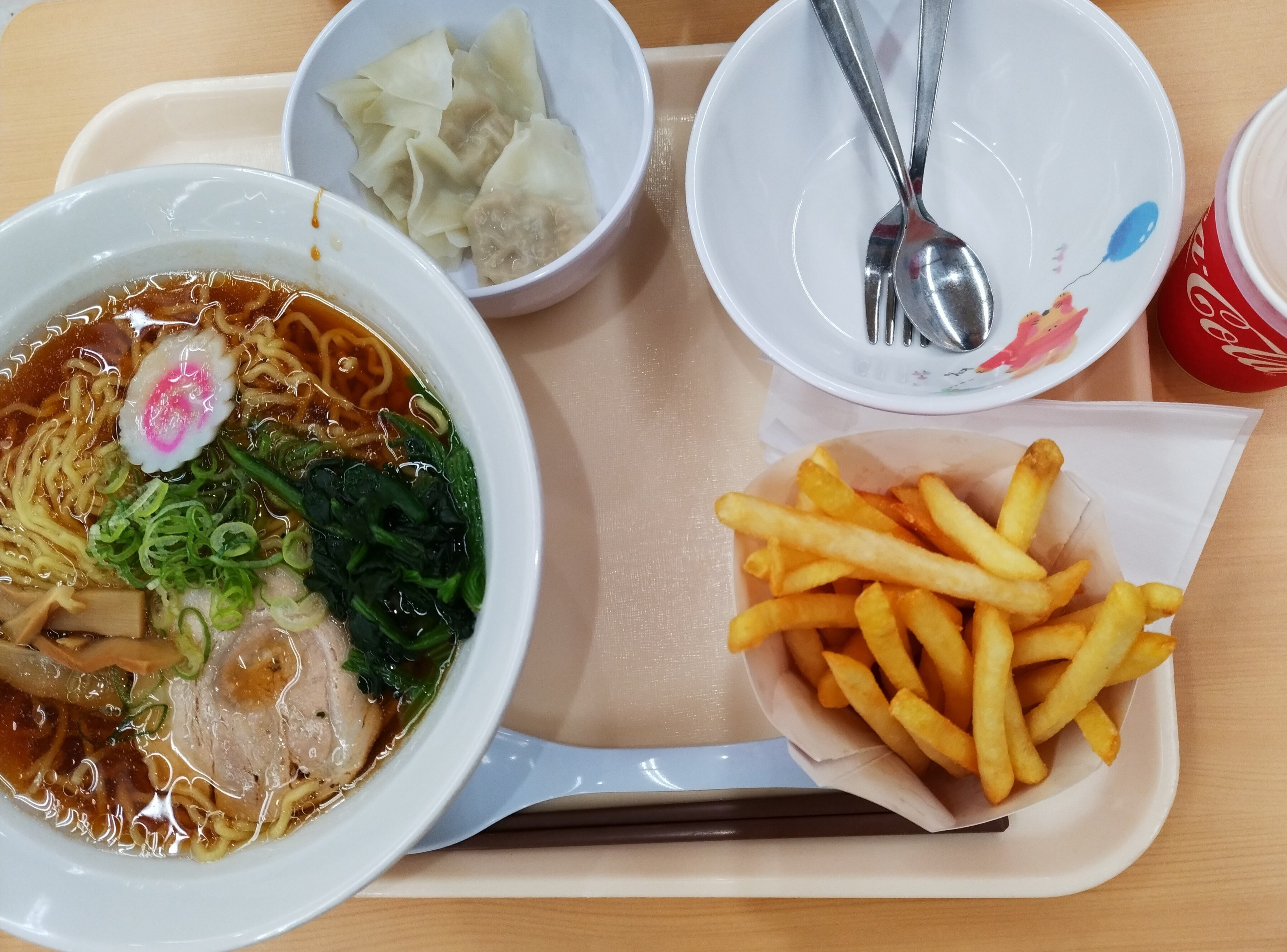 ワンタン麺にポテト小とジュース小。